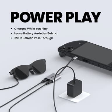XREAL Power USB-hubb är ett kompakt och mångsidigt tillbehör utformat för att förbättra din AR-upplevelse genom att samtidigt driva dina AR-glasögon och ladda din källenhet, samtidigt som den förlänger anslutningsräckvidden.Läs mer om produkten