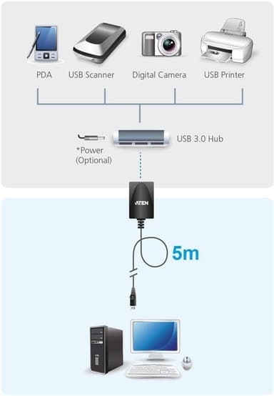 ATEN UE350, aktiv USB 3.0 förlängningskabel, Typ A hane - Typ A hona, 5m, svartFörlänger en USB-anslutning med fem extra meter.Läs mer om produkten