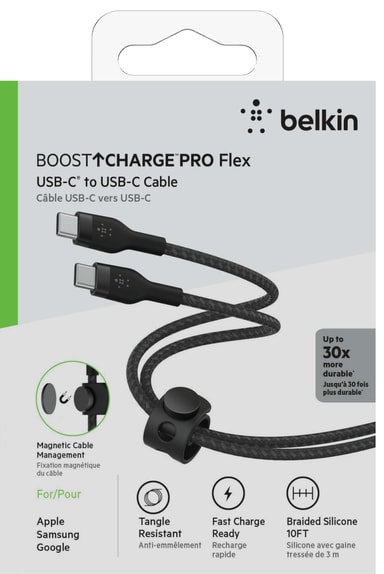 Belkin USB-C till USB-C flätad silikonkabel 3m (svart)