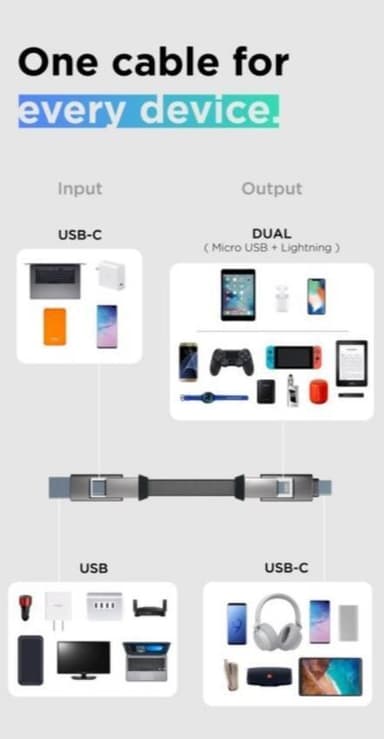 Ladd och datakabel Apple, Android, Lightning, Micro USB & USB-C 6 in 1 InCharge 6 Moon White