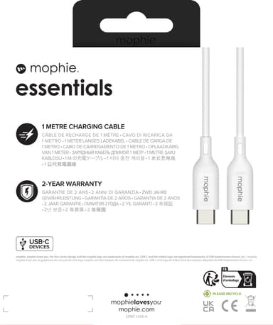 Tack vare Mophie Essentials USB-C-kabel kan du hålla alla dina enheter laddade. Den hållbara PVC-konstruktionen ger långvarig användning och kabeln ger stöd för snabbladdning vid upp till 60W hastigheter.Läs mer om produkten