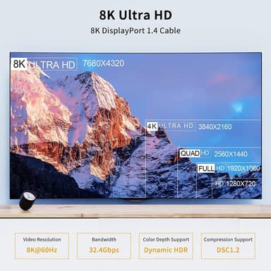 NÖRDIC DPDP-N2011 vinklad videokabel med hög kvalité för att kunna koppla en enhet med Displayport-utgång till en annan enhet 1m svart. Kabeln uppfyller alla krav i Displayport 1.4 standarden.