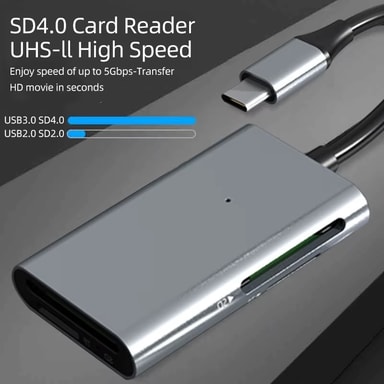 NÖRDIC USB-C Kortläsare med 4 kortplatser är en kraftfull och kompakt lösning för snabb och effektiv dataöverföring. Med stöd för både SD och MicroSD i versionerna 4.0 och 3.0 kan du läsa flera olika minneskortstyper direkt via USB-C utan behov av drivrutiner.Specifikationer: