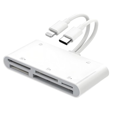 NÖRDIC USB-C/Lightning Kortläsare 5 Slot CF, SD, MicroSD, MS, XD 1xUSB-A 1xUSB-C UHS-I