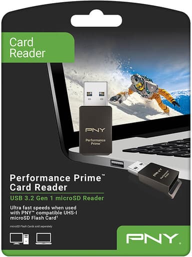 PNY Prime microSD-kortläsare låter dig dra nytta av snabba läs- och skrivhastigheter och den ansluts till din dator eller bärbara dator via USB 3.2 Gen 1-gränssnitt, vilket gör överföringen av foton, musik, eller appar så smidig som möjligt.Läs mer om produkten