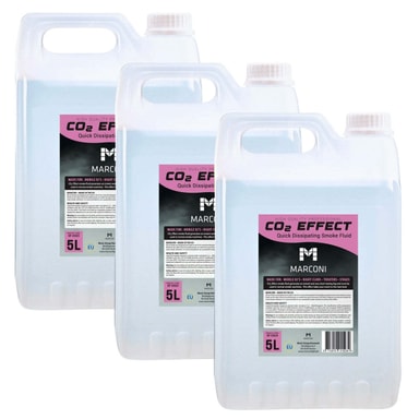 Marconi rökvätska 3 x 5 liter, CO2 effekt. Denna CO2 effekt rökvätska försvinner nästan omedelbart, och ger därför en CO2 effekt som används på...Läs mer om produkten