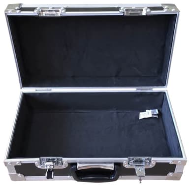 Liten, svart 5 mm tjock filghtcase. Med aluminiumkanter. Bollformad skyddshörn. Butterfly lås. Läs mer om produkten