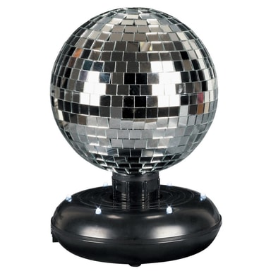 Klassisk discokula på fot. 15 cm i diameter med 6 ledlampor som lyser på klotet.