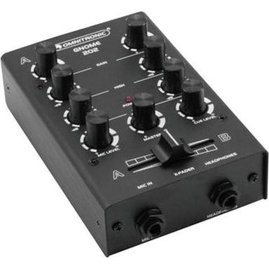 Omnitronic Gnome E-202 2 kanaler DJ Mixer2 stereokanaler med gain-reglage och 2-bands-EQ, anslutning med RCA-uttag · Reglerbar mikrofoningång via 6,3 mm uttag · Reglerbart hörlursutgång med 6,3 mm uttag · Reglerbar masterutgång och record-utgång viaLäs mer om produkten