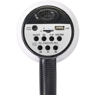 • Hög röst med 20 W uteffekt · Räckvidd på upp till 500 meter · Funktioner: Tal/inspelning/uppspelning/siren/musik · 2600 mAh litiumbatteri · Med