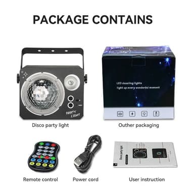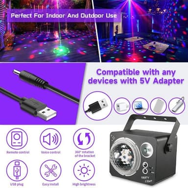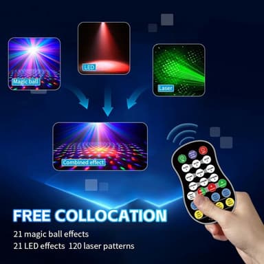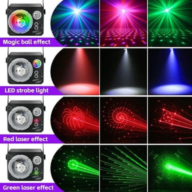 Roterande Magic Ball Laser Light RGB LED Strobe Ljudaktiverad projektorlampa för Bar / KTV / Disco【Fantastiska visuella effekter】 Kombinerar 120 lasermönster, 15 magiska bollfärger och 15 bakgrundsfärger för en fascinerande ljusshow.【Dual Motor RotatLäs mer om produkten