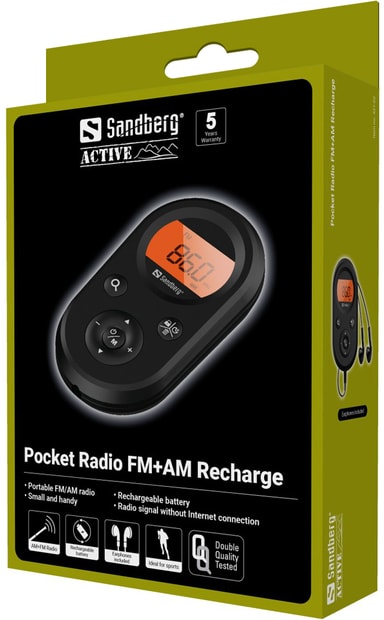 Sandberg Recharge pocket FM+AM-radio låter dig lyssna på din favoritstation samtidigt som du är utanför nätet. Den kan ställa in både FM- och AM-stationer och den är en perfekt följeslagare för sport, promenader i naturen eller camping.Läs mer om produkten