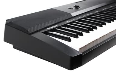 88 polyfoniska tangenter.  6 inprogrammerade ljud.  Percussion och GM-modul.  16 demosånger.  Metronome.  Programmera, spela in och spela dina egna rytmer.  Sustain, vibrato och transpose-funktion.  Keyboard split ...Läs mer om produkten