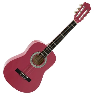 DiMavery AC-303 klassisk spansk gitarr, rosa. Storlek 1/2, ca. 5 - 7 år. Byggd av äkta trä. Gaboon, blackwood och limewood. Skala: 535 mm. Läs mer om produkten