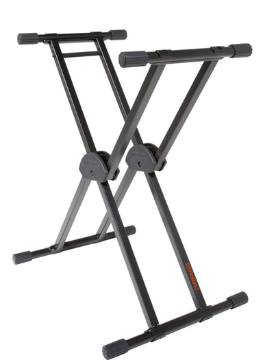 Solid dubbelärmad keyboardstativ.  KS-20X i klassiskt X-formad design med dubbel förstärkning.  Lämplig till de flesta typer av keyboards, inkl. 88-tangenters modeller.  Fjäderbelastat handtag med låsningskobling.  Snabb och ...Läs mer om produkten