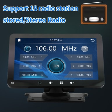 Stödjer FM-sändning (frekvensområde 87-108 MHz), högkvalitativ digital stereo FM-mottagare, kan automatiskt/halvautomatiskt söka exakt efter radiostationer, lyssna på nyheter, musik, reseinformation, njut av din körtid varje dag