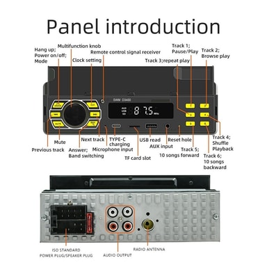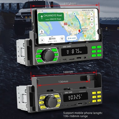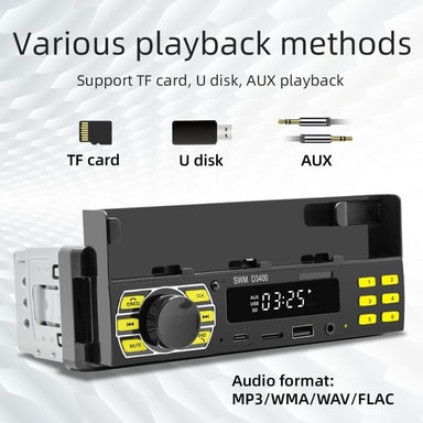 SWM D3400 Bluetooth Stereo In-dash bilstereo FM-radio MP3-spelare med design för telefonhållare, stöd för U-disk