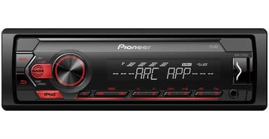 1-DIN-receiver med röd belysning, USB och kompatibel med Apple- och Android-enheter