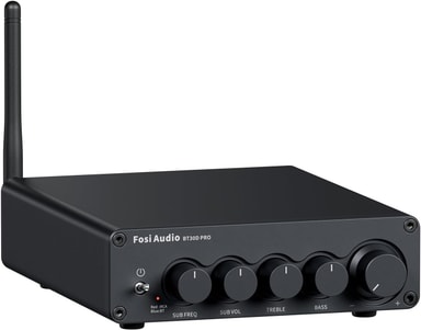 Fosi Audio BT30D PRO är en kraftfull och kompakt 2.1-kanals Bluetooth-förstärkare som levererar upp till 165W x 2 + 350W effekt. Perfekt för musik, film och gaming, med stöd för både passiva och aktiva högtalare och subwoofers. Förstärkaren har justerbar frekvens och volym för subwoofern, vilket gör den mycket flexibel. Med Bluetooth 5.0 får du en stabil anslutning, och dess robusta metalldesign säkerställer lång hållbarhet.Specifikationer: