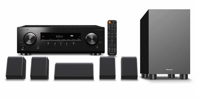 5.1-kanals mottagare med 6 x 150 watt med genomsläppning av Ultra HD. HDR10. Blåtand. DTS:X. Dolby Atmos. 5.1 högtalarsystem. Läs mer om produkten