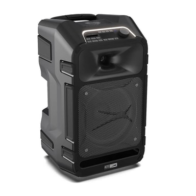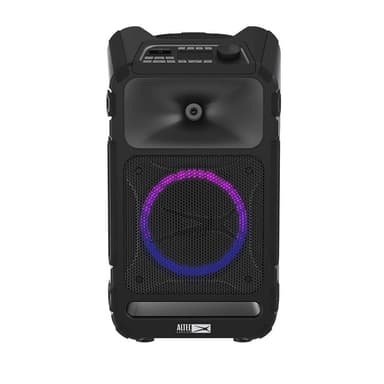 SonicBoom180 är en kraftfull bärbar partyhögtalare. Med sin 14-timmars batteritid och LED-ljuseffekter som pulserar och blinkar med musiken, skapar den direkt en fantastisk partystämning. Dra igång musiken via Bluetooth eller Aux-ingången, koppla in en eller två mikrofoner och bli din egen DJ!