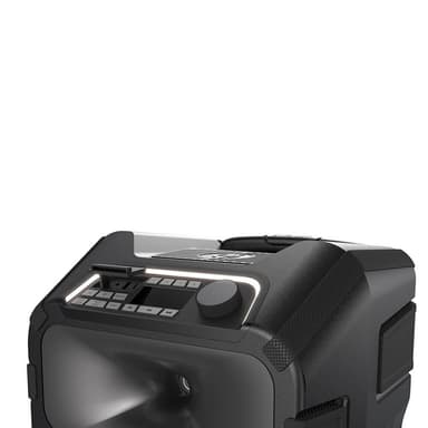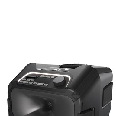 SonicBoom120 är en kraftfull bärbar partyhögtalare. Med sin 12-timmars batteritid och LED-ljuseffekter som pulserar och blinkar med musiken, skapar den direkt en fantastisk partystämning. Dra igång musiken via Bluetooth eller Aux-ingången, koppla in en eller två mikrofoner och bli din egen DJ!