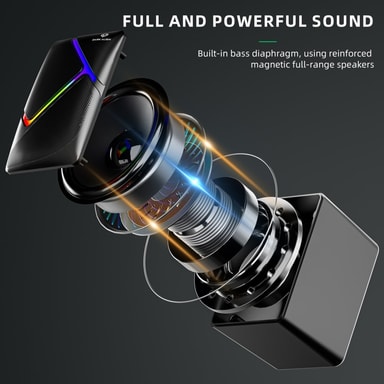 DARK ALIEN 1 par mini USB trådbunden stationär högtalare Dator Bärbar Subwoofer med RGB-ljus - S-510Liten storlek, tar inte upp plats och skrivbordet är inte rörigtLjudenhet med dubbla högtalare, 360 graders surroundljud, HiFi-ljudkvalitet3,5 mm+USB-Läs mer om produkten