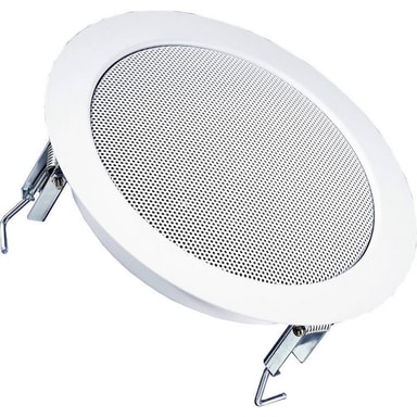 ELA-inbyggnadshögtalare Visaton DL 18/2 70 W 100 V Vit 1 stSkyddsgaller · Metallutförande · Lämplig för infälld montering · Klämanslutning · Bajonettanslutning.100 V · Fuktimpregnerat membran · UV-beständigLäs mer om produkten