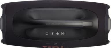 När det gäller bas gillar vi att ha alternativ. Starta JBL Boombox 4 så får du den klassiska JBL-signaturbasen som vi alla älskar. Vill du ha något djupare? Tryck på Bass Boost-knappen på den övre panelen – JBL Horn-märket lyser orange och plötsligt är du i Deep Bass-läge där de två baselementen och de tre passiva elementen tar över. Vill du ha något tightare och mer energiskt? Tryck på knappen två gånger så blir Horn-märket vitt och du är i Punchy Bass-läge. Oavsett humör matchar vi basen.
