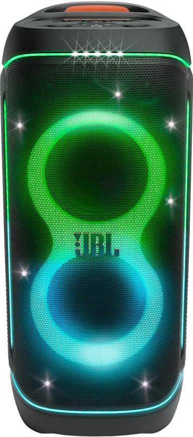 Överlägset JBL Pro-ljud, djup bas som slår precis rätt och en ljusshow som går hela vägen – stjärnljus, flödande strålar och pulserande stroboskop. Med släta hjul, ett robust handtag och en stänksäker design rullar du med dig festen vart du än går.