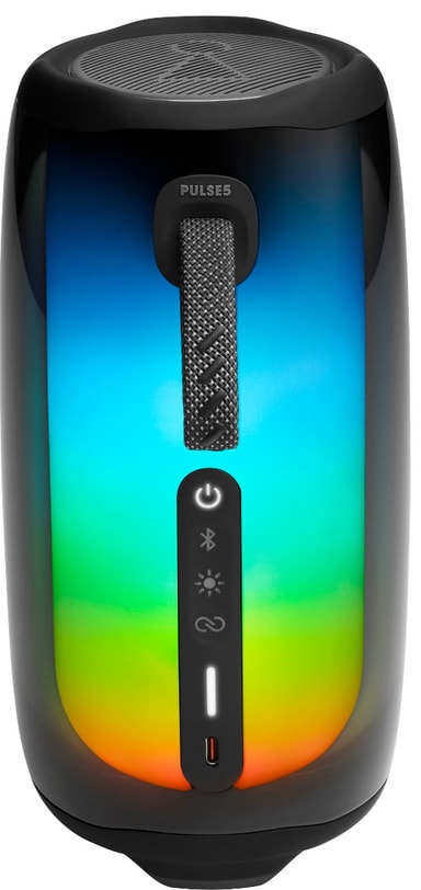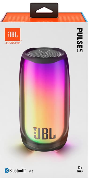 Kompakta och lätta JBL Pulse 5 trådlös högtalare ger en iögonfallande ljusshow tack vare en 360° LED-ljuspanel som omsluter kroppen. Njut av din musik var som helst när som helst tack vare ett imponerande batteri som räcker upp till 12 timmar.Läs mer om produkten