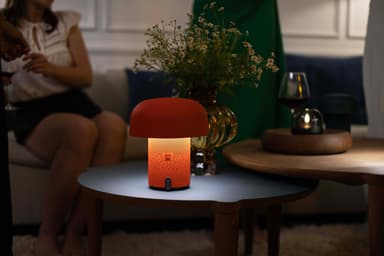 Kombinera värme, musik och design med den bärbara högtalaren Kooduu Sensa Play, en Bluetooth-högtalare och stämningslampa driven av SOUND by JBL. Denna svampformade lampa levererar 360° rumsuppfyllande ljud med djup bas och klara höga toner samtidigt som den sprider ett mjukt, dimbart sken som förvandlar ditt hem, din terrass eller trädgård till en avkopplande oas.