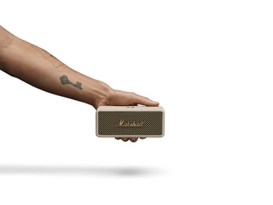 Marshall Emberton III trådlös bärbar högtalare erbjuder ett sätt till en fantastisk ljudupplevelse med sömlös Bluetooth-streaming. Den levererar Marshall Signature-ljud med True Stereophonic, och säkerställer dynamiskt, 360° flerriktat ljud med kraftfull bas och balanserade frekvenser vid vilken volym som helst. Med över 32 timmars speltid på en enda laddning är den idealisk för långvarig användning. Den har en IP67-klassning, är dammtät och vattentät och kan fungera även när den är nedsänkt.