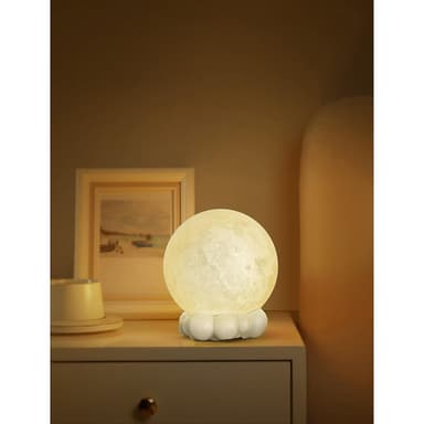 Denna lampa är en perfekt reproduktion av månen, alla dess detaljer återges troget. Så gör denna månresa helt i musik tack vare denna högtalare! Lampan är trådlös och det medföljande batteriet har en driftstid på 8 till 30 timmar beroende på vald ljusintensitet. Enkelt uppladdningsbar med den medföljande USB-C-kabeln. Du kan ta på den med handen, den är inte varm!