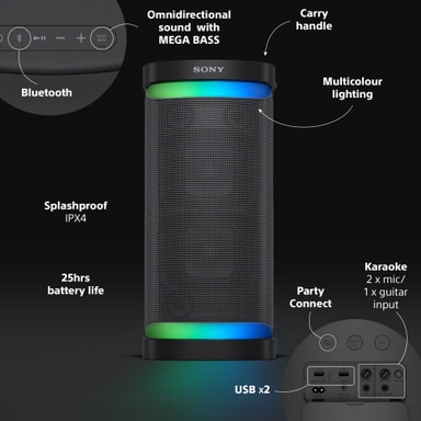 För festen eller för avslappning, Sony portabel trådlös Bluetooth högtalare SRS-XP700 har ett kraftfullt och välbalanserat ljud, lång batteritid, innovativ ambient-belysning, vattentålig design och enkel kontroll via en app.Läs mer om produkten