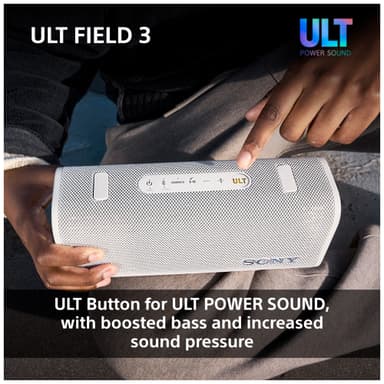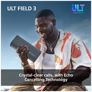 "Sony ULT Field 3 är relativt liten till formatet men har ett stort ljud med en rejäl bas. Om du föredrar denna eller något av syskonen i samma serie beror främst på vilket behov du har. Med Field 3 får du en bärbar högtalare som utan problem kan underhålla ett lite större sällskap i parken eller på stranden."