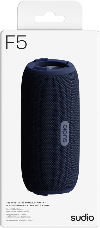 Sudio F5 trådlösa bärbara högtalare ger dig en bättre ljudupplevelse med sömlös strömning och kraftfull bas. Den har kraftfulla 20 W-högtalare, IPX5-klassificering och en speltid på upp till 27 timmar.Läs mer om produkten