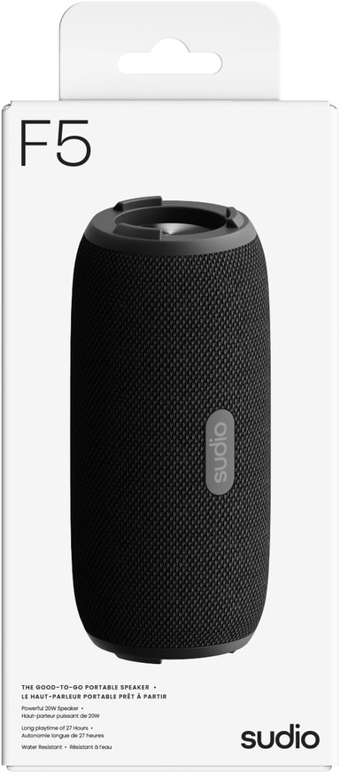 Sudio F5 trådlösa bärbara högtalare ger dig en bättre ljudupplevelse med sömlös strömning och kraftfull bas. Den har kraftfulla 20 W-högtalare, IPX5-klassificering och en speltid på upp till 27 timmar.Läs mer om produkten