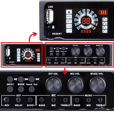 Inbyggt litiumbatteri: Mikrofonsystemet är utrustat med ett inbyggt uppladdningsbart litiumbatteri med en kapacitet på 1300mAh/3,7V, vilket ger en lång drifttid.