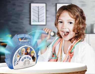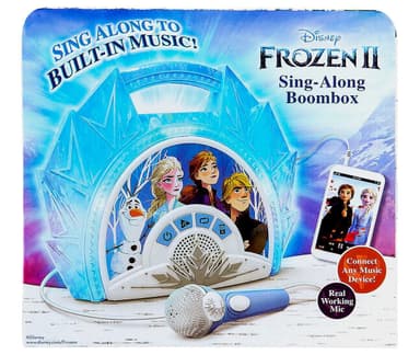 Sing along and record yourself Includes built-in musicFlashing light show Includes real working mic Connect your device to the Aux Input to listen to your own music!Läs mer om produkten