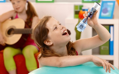 You can sing along to the built-in songs, or any songs on your MP3 player or other audio device by conneccting it with an MP3 cable Flashing lights! Have a great show Speaker Song button Press the song button to hear speech/sound effects and play theLäs mer om produkten