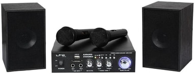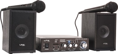 Karaoke set - enkel att installera.  Innehåller 2 mikrofoner.  BLUETOOTH.  USB / SD.  2 x MIC-ingång.  1 x LINE-ingång.  EQ-inställning. Läs mer om produkten