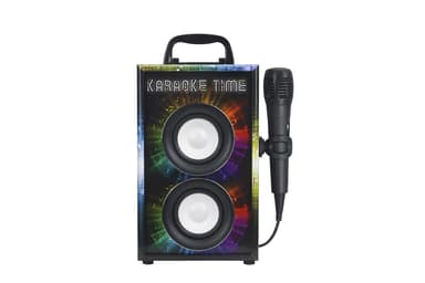 Denna karaokemaskin har allt du behöver för en kväll full av sång och musik. Med den inbyggda högtalaren kan du spela upp alla dina favoritlåtar, samtidigt som den medföljande mikrofonen låter dig sjunga tillsammans med musiken.