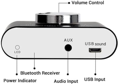 Med Bluetooth Audio förstärkare kan du trådlöst streama ljud med Bluetooth 5.0, upp till 20m. Med en stabil och snabb trådlös ljudöverföring minskar även risken för interferens och förlust av ljud. En perfekt lösning för dig som vill förvandla dina vanliga högtalare till Bluetooth-högtalare. Den simpla designen säkerställer ett rent och naturligt ljud. Utöver Bluetooth går det att koppla PC eller bärbar via USB porten, eller mobil, MP3, DVD spelare m.m via AUX.