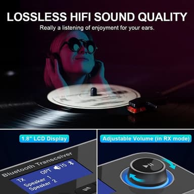 I sändarläget kan du ansluta upp till två trådlösa hötalare eller hörlurar via bluetooth och din ljudkälla via de trådade ingångarna. I mottagarläget kan du ansluta högalare eller hörlurar via de trådade ingångarna och din ljudkälla trådlöst via bluetooth. I bypass läget ansluts högtalare och ljudkällor via enheten genom att använda SPDIF eller AUX in och utgångarna.