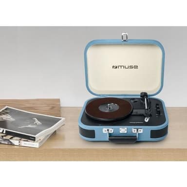 Muse MT-201 familjen fås i olika färger. Den bärbara skivtallriken har två högtalare inbyggda i höljet. Den har Bluetooth. Skivtallriken har tre olika hastigheter: 33/45/78 varv per minut.Läs mer om produkten