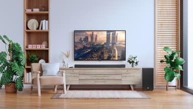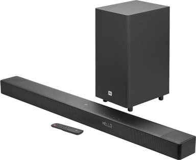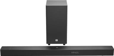 JBL SB595 Atmos 3.1.2-kanals soundbar levererar äkta Dolby Atmos med 440W kraftfullt ljud och en trådlös 6,5" subwoofer, utrustad med HDMI eARC, Bluetooth 5.4-streaming och en dedikerad mittenkanal för kristallklar dialog.Läs mer om produkten