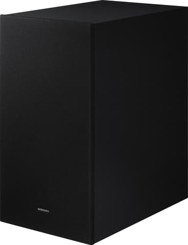 "Samsung HW-B660D har högtalarelement i en 3.1-konfiguration, vilket innebär att den får klara sig utan inbyggda höjdkanaler för Dolby Atmos och DTS-X. Fast det är den som sagt inte ensam om i detta test. I kartongen ingår även en separat trådlös subwoofer – en enkel och lättplacerad sub i ett fyrkantigt träkabinett."