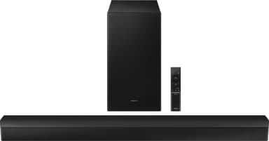 Soundbar med trådlös subwoofer som anpassar ljudåtergivningen efter typen av innehåll. Den är lätt att koppla samman med din Samsung TV och styrs enkelt med TV:ns fjärrkontroll..