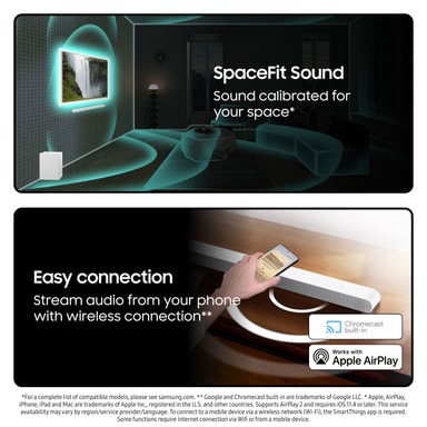 Samsung 3.1ch HW-S711D soundbar har utmärkt surroundljud tack vare Wireless Dolby Atmos. Ditt ljud optimeras ytterligare baserat på ditt rum och innehållet du tittar på med hjälp av teknologierna SpaceFit Sound och Adaptive Sound.Läs mer om produkten